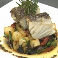Escaldar o bacalhau marinado em água a ferver durante 3 minutos. Mexer o